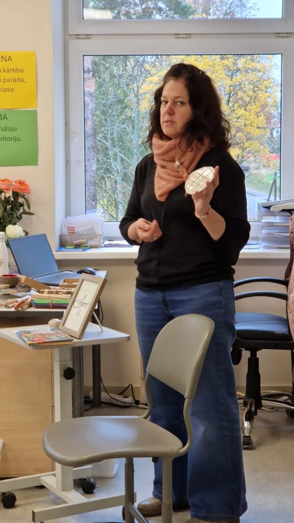 Nodarbības sākumā Marita iepazīstināja skolēnus ar Jāņa Ankrava pasaku “Desas piedzīvojumi”, kas lika pasmaidīt un aizdomāties par neatlaidību ceļā uz mērķi.