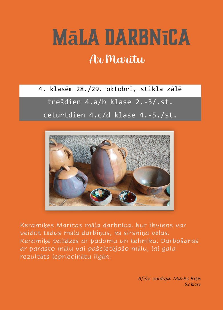 Kultūras nedēļas ietvaros 4. klases devās radošā piedzīvojumā kopā ar Maritu – keramikas darbnīcas “Azotē” radītāju.