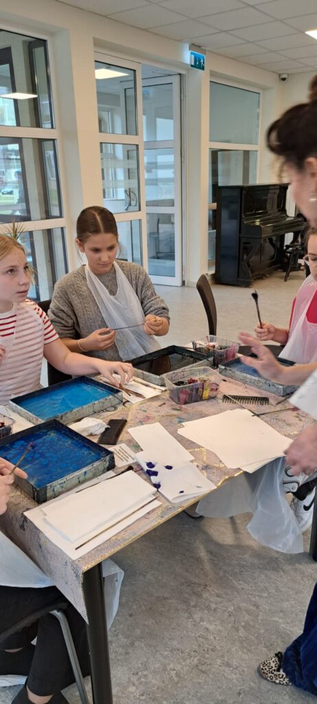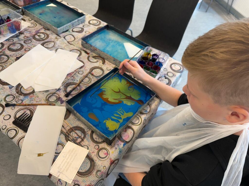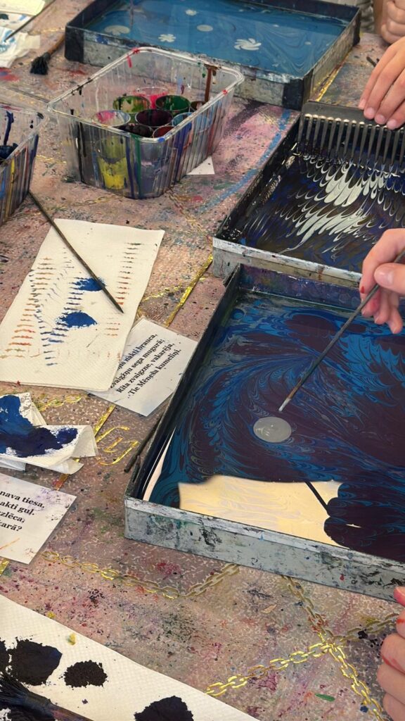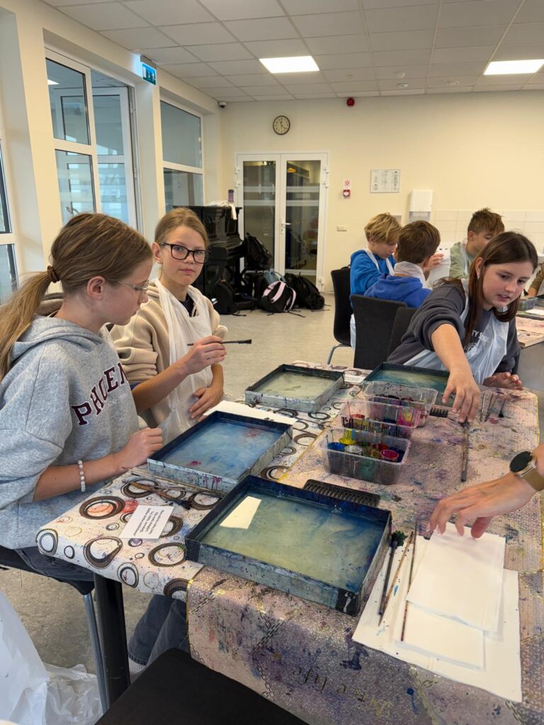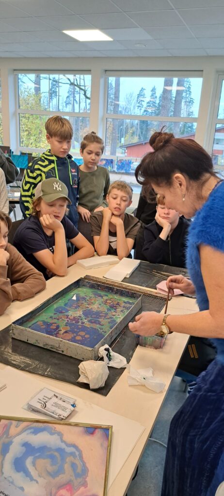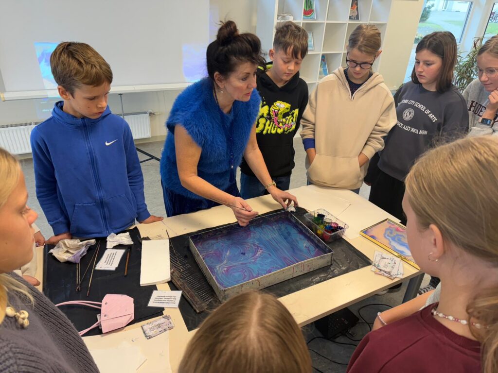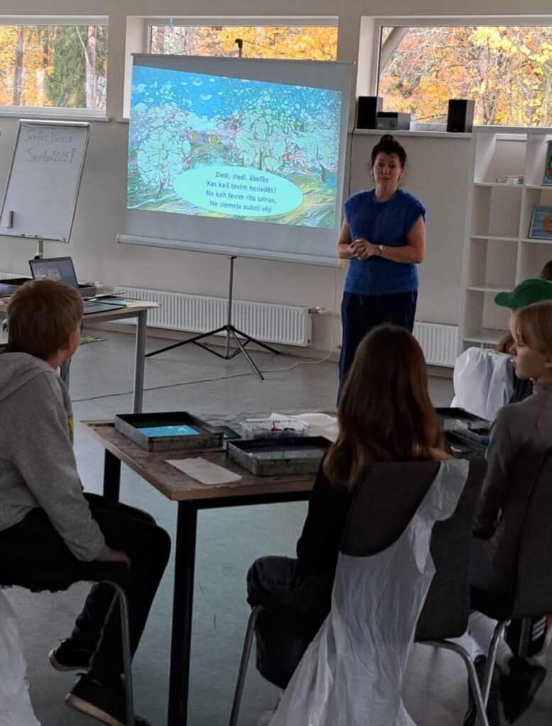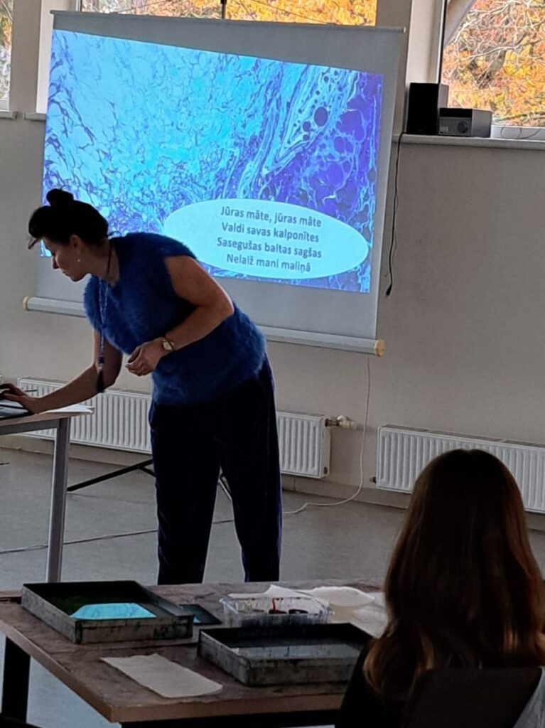 Kultūras nedēļas un “Latvijas skolas somas” ietvaros pie laurēniem šodien ciemojās māksliniece Anda Kolosova, kura stāstīja par Ebru gleznošanas tehniku, rādīja piemērus kā var ilustrēt tautas dziesmas. Nodarbības otrajā daļā skolēni paši veidoja savu vizuālo noformējumu tautas dziesmai, izmantojot Ebru tehniku. Ūdens un krāsu mijiedarbība bija kā aizraujošs ceļojums mākslas pasaulē.