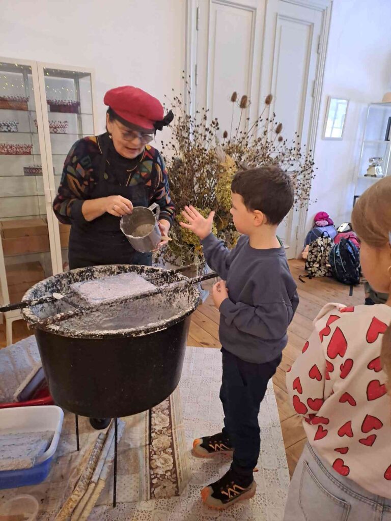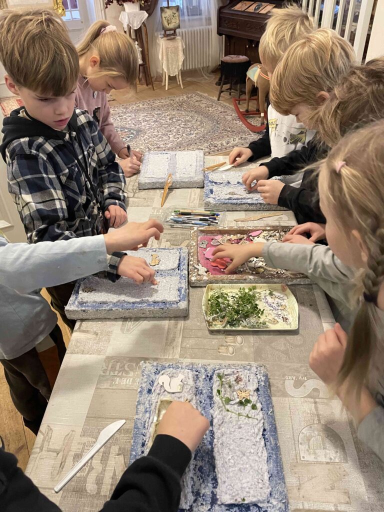 Pirmo klašu laurēni dizaina un tehnoloģiju stundu ietvaros apmeklēja papīrliešanas meistarklasi kopā ar Zinaīdu Ceski. Laurēni uzzināja, kā papīrs radies un kā to iespējams izgatavot. Katrs izveidoja savu unikālo grāmatzīmi.