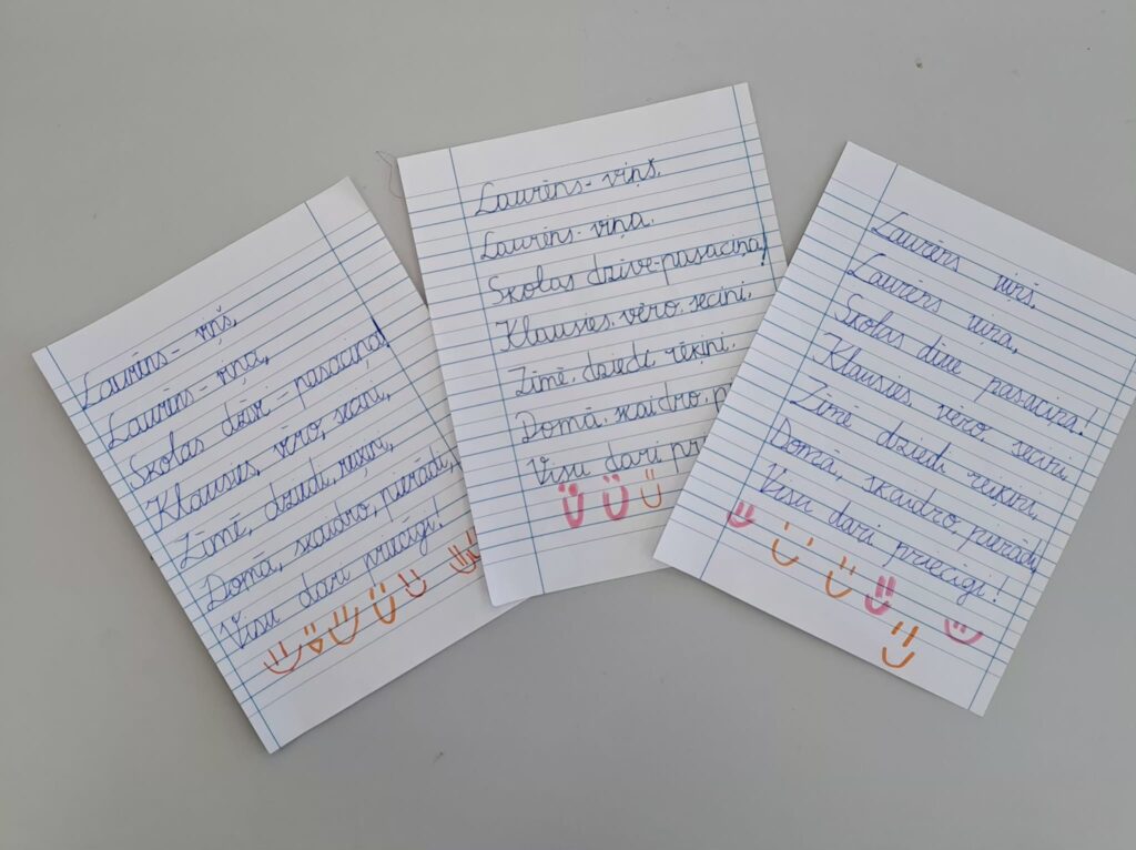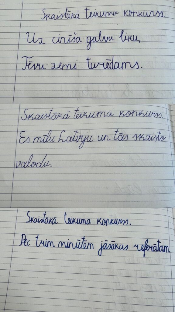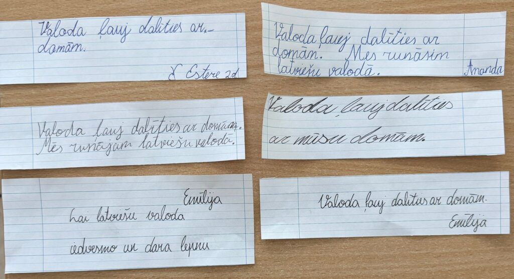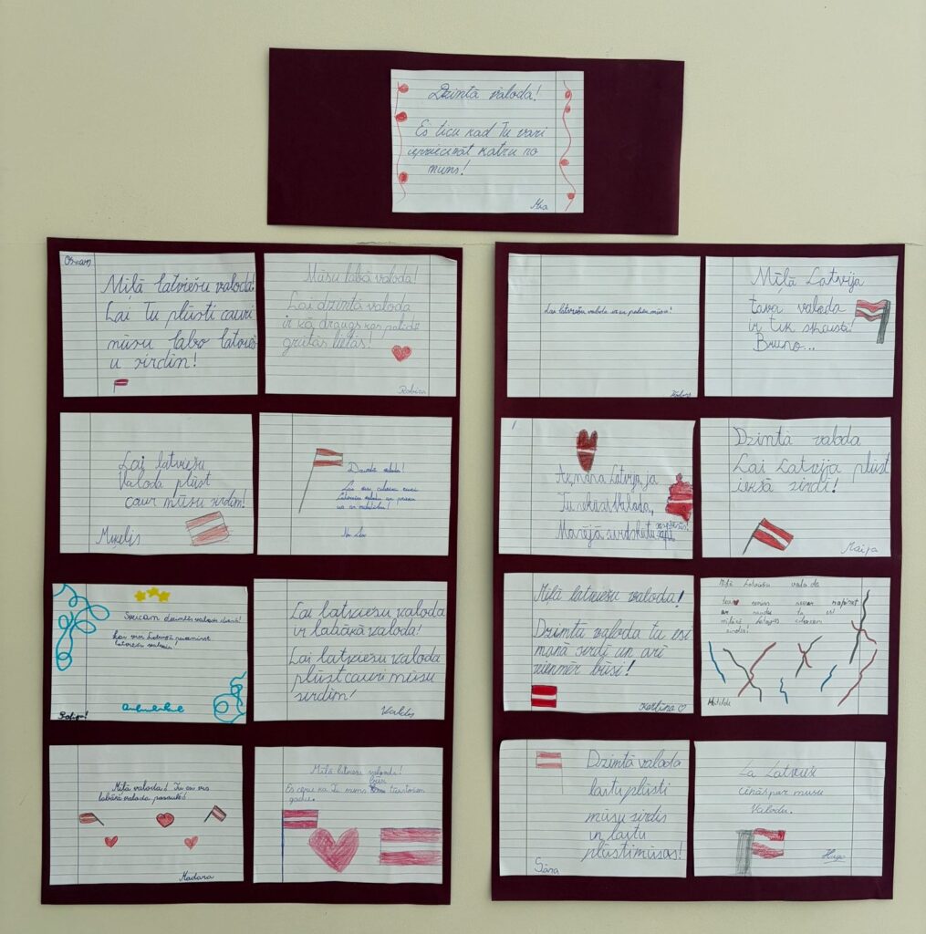 Sestdien, 21.februārī tiek atzīmēta Starptautiskā Dzimtās valodas diena. Šodien katrā 1.-3. klasē katrs skolēns raksta savu latviskāko, skaistāko vārdu, teikumu vai frāzi. Lūk, foto ieskats: