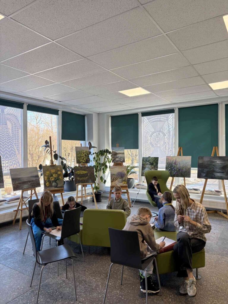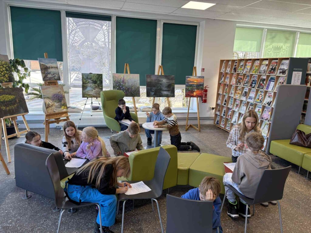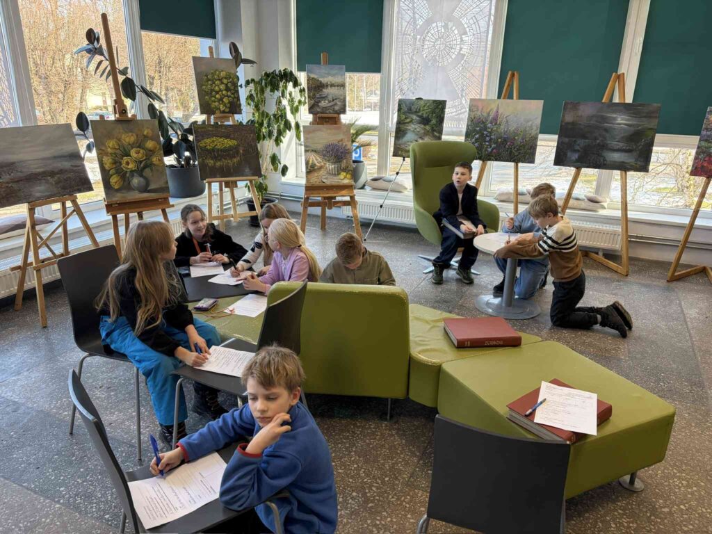 6.martā 2.b klase devās uz novada bibliotēku, lai apskatītu mākslinieces Ingas Grīgas gleznu izstādi “Koši pelēks”. Skolēni uzmanīgi aplūkoja gleznas un katrs izvēlējās vienu darbu, kuru pētīt dziļāk. Vizuālās mākslas uzdevumā viņi vēroja krāsas, formas un noskaņu, kā arī mēģināja izprast, ko māksliniece ar savu darbu vēlas pastāstīt. Pēc izstādes apskates ar kājām devāmies atpakaļ uz skolu, priecājoties par pavasarīgo laiku.