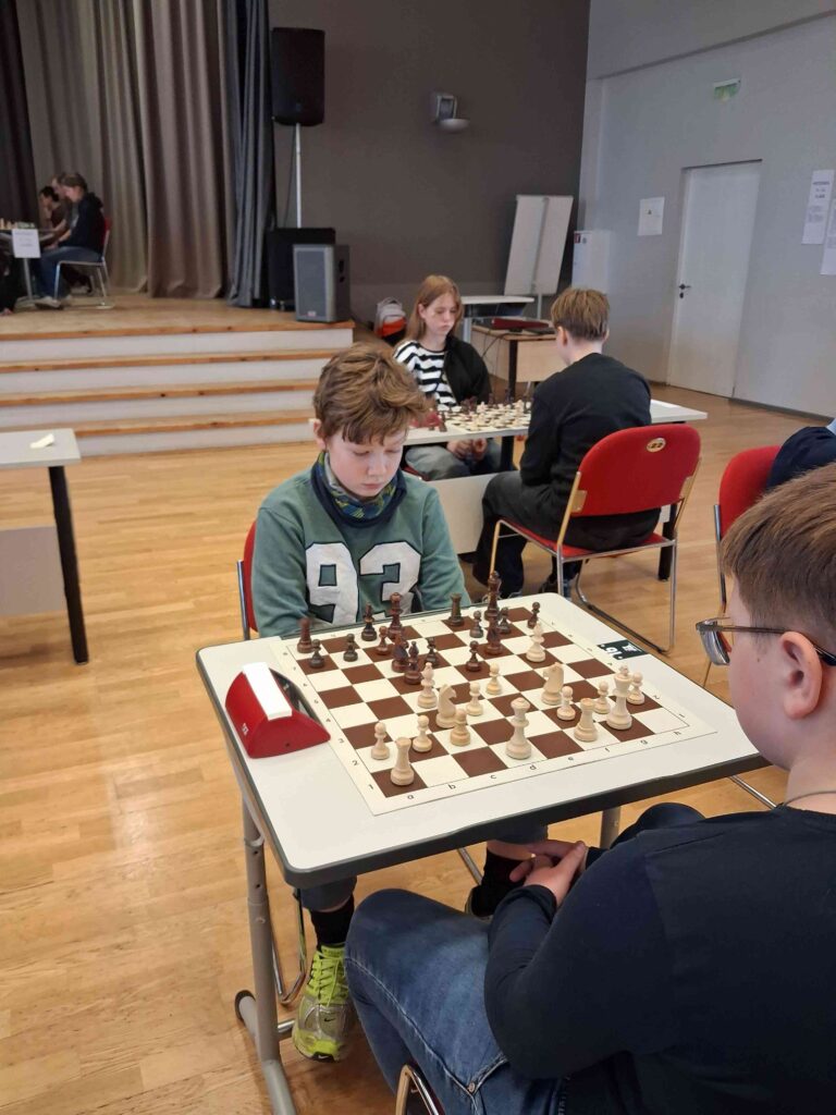 Jaunāko skolēnu ieskaites grupā labāko rezultātu no mūsējiem uzrādīja Miķelis, kurš 7 mačos iekrāja 4.5 punktus, turklāt savstarpējos dueļos pārspēja abus savus komandas biedrus. Kopumā tas deva ļoti solīdo 14.rezultātu 57 dalībnieku konkurencē. Šķiet, saulainais pavasaris bija atstājis lielu iespaidu uz Edvardu, kam liderīgais noskaņojums ilgi neļāva atrast īsto vietu, kur kara cirvis aprakts, turklāt arī norakt to sanāca vēl pirms fināla svilpes. Nekas – vissliktākās sacensības ir vislabākais treniņš. Gustavs, startējot tikai savās ceturtajās sacensībās, guva vērtīgu pieredzi un nopietnajā konkurencē izcīnīja 2.5 punktus. Rezultātā – lepnums un prieks par paveikto, kā pašam, tā arī skolotājam un vecākiem.