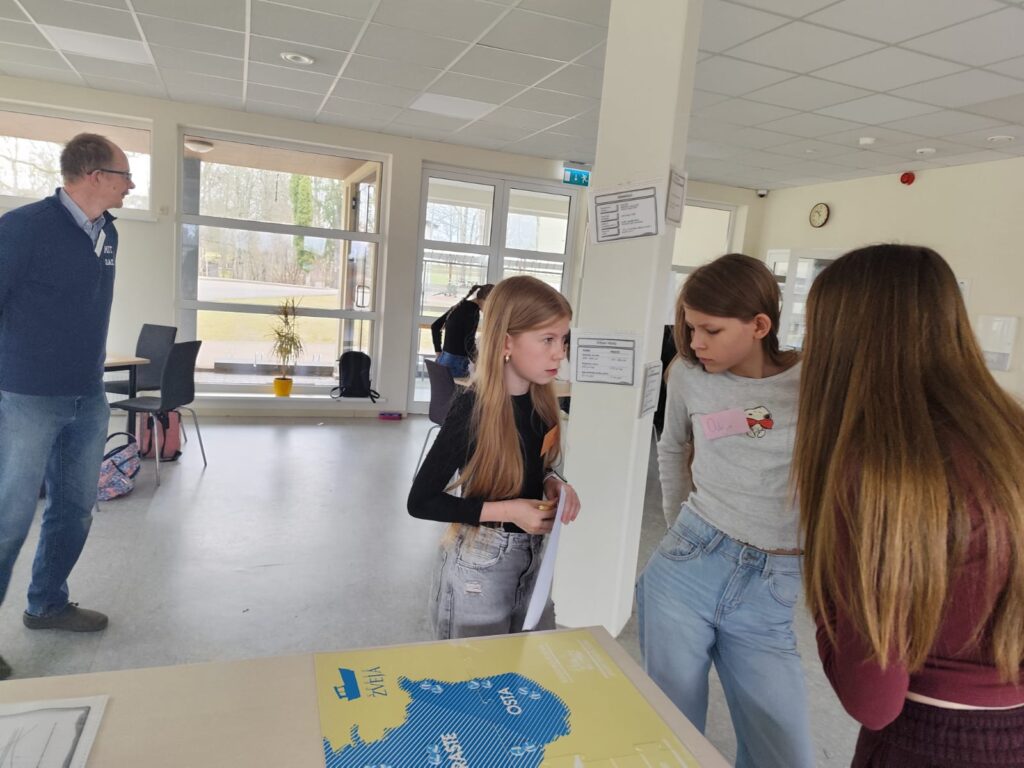 6.b klase trīs mācību stundu ietvaros kopā ar Tīnas Lotes tēti Mārci Oliņu ar aizrautību spēlēja imitācijas spēli “Zveja”. Spēle ir par atjaunojamo dabas resursu ilgtspējīgu izmantošanu.